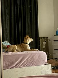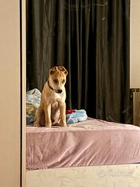 Cucciolo di 3 mesi, incrocio tra Pitbull e Husky, con occhi azzurri stupendi e un carattere dolcissimo. Ama giocare tantissimo, è pieno di energia e ha sempre voglia di interagire con le persone, quindi è importante non lasciarlo da solo per troppo tempo.