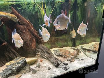 Pesci cresciuti in acquario, sempre ben alimentati e abituati alla convivenza in gruppo.