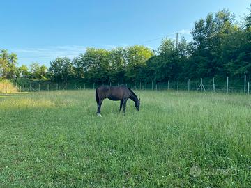 Offro cavallo purosangue irlandese (1,68m) in mezza fida. Ha esperienza in dressage, salto e scuola, ed è adatto anche a principianti. Richiedo impegno serio e cura costante, data l'età un po' avanti preferirei però che facesse un lavoro leggero in campo e qualche passeggiata.