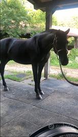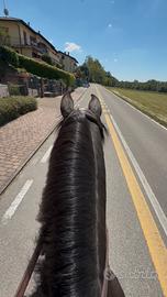 Per mancanza di tempo da dedicare a lavorarlo con costanza, cerco mezzafida per Eclipse, il mio castrone PRE di 11 anni. Attualmente viene montato all'inglese, ma in passato é stato montato anche all'americana (no discipline). Adatto a lavoro in piano, passeggiate (anche impegnative) e saltini amatoriali. Bravo anche nel lavoro in libertà. Non adatto a principianti, ha bisogno di una persona sicura, che sa cosa fa e sa come correggerlo quando serve. Requisiti indispensabili, oltre all'esperienza (non per forza certificare da patenti/brevetti): avere un'ideologia etologica ed essere maggiorenni. Il cavallo é regolarmente assicurato anche per uso di terzi, é vaccinato ed esegue regolarmente i vermifughi. Eclipse é scuderizzato in un maneggio a Vedano Olona (VA) e NON può essere spostato. La struttura mette a disposizione campo coperto (illuminato e regolarmente erpicato e bagnato), campo esterno (illuminato e regolarmente erpicato e bagnato), tondino coperto di generose dimensioni (illuminato e regolarmente erpicato e bagnato), selleria e club house. Possibilità di passeggiate direttamente partendo dalla scuderia nel Parco Regionale della Pineta. Eclipse é sferrato e vive a paddock.
