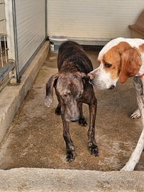 Michele è un bracchetto di circa 3 anni, taglia media per 18 kg di peso. È stato trovato recentemente per strada senza microchip e, spaventatissimo, non volevamo che finisse chiuso in un canile, così lo abbiamo accolto nel nostro rifugio di volontarie. Non conosciamo la sua storia ma deve avere vissuto l'inferno....Michele vive nel suo mondo di paura, è molto diffidente e timosoroso, tanto che se ne sta tutto il giorno fermo nel suo box, dal quale guarda gli altri cani che giocano e corrono, che interagiscono tra di loro socializzando.... ciò nonostante è un cane dolcissimo e gentile: quando una volontaria lo accarezza o un altro cane gli si avvicina, lui sembra apprezzare le attenzioni e le accoglie senza reagire con aggressività, bensì con tenerezza e dolcezza. È un cane che ha bisogno di tanto amore, tempo e pazienza, di una famiglia amorevole che lo accolga desiderosa di riportarlo alla vita e a fargli scoprire quanto è bello essere amati e coccolati. Michele è microchippato, vaccinato e castrato:la sua è una adozione del cuore perché è purtroppo positivo alla leishmania, ma con le cure adeguate può condurre una vita normale come tutti gli altri cani. Aiutateci a renderlo finalmente felice con una bella adozione: Michele raggiunge tutto il centro e nord tramite staffetta autorizzata e previo iter conoscitivo con l'adottante.