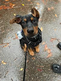 Disponibile splendido cucciolo di 5 mesi, incrocio tra Dobermann e Jack Russell: un mix raro, vivace e intelligente, ideale per chi cerca un cane attivo ma dolcissimo.