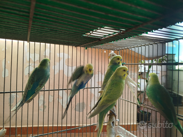 Vendo mini blocco di 5 cocorite di cui 4 maschi rainbow e una femmina Albina. Maschio singolo 15 Femmina solo in coppia 30 euro Tutti e 5 a 60 euro. Accetto scambi con altri rainbow faccia oro o Hagoromo.
