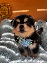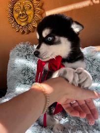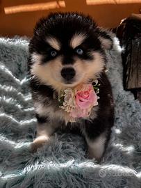 Piccoli meravigliosi pomsky miniatura f4 . I genitori pesano 4 e 9 kg la madre . I cuccioli si affidano con microchip e vaccini . Tutti e tre i cuccioli rimasti disponibili hanno gli occhi azzurri e si affidano dopo i due mesi compiuti .