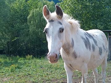 Vendo a malincuore Neve, mini mula di 11 anni, addestrata a sella, alta 103 cm al garrese. Prima che la prendessi io andava anche attaccata, negli ultimi anni non lo ha fatto.