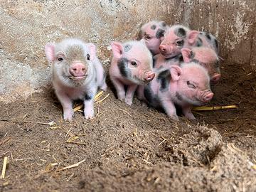Finalmente sono tornati i Mini Pig!!Disponibili n. 2 cuccioli Maschi e n.2 cuccioli Femmine. I Minipig juliana sono i maialini nani più piccoli in circolazione ( no vietnamiti no pancia a tazza). I genitori, originali e registrati, provengono da importanti allevamenti, selezionati per colorazione, forma e dimensioni. Da adulti raggiungeranno un peso di 20 kg, cuccioli già svezzati disponibili, con spedizione disponibile con corriere autorizzato a carico di chi acquista. Solo gente interessata, no perditempo per favore. Maschi € 250 cadauno Femmine € 300 cadauno