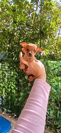 Salve,sono in vendita ultimi 2 cuccioli maschi di pincher toy originali di 69 giorni già svezzati, sverminati, anti parassitario inserito, da adulti non superiore 1.700 kg circa,taglia proprio piccolissima toy,colore rosso fulvo,richiesta non trattabile, contattare solamente se si è realmente interessati grazie