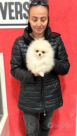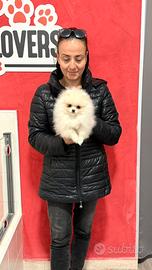 POMERANIA BIANCA DA NOSTRO ALLEVAMENTO; 3 mesi d'età Peso attuale di soli 589 gr dimostrabile con specifico video. LA TAGLIA ADULTA SI RAGGIUNGE A 6 mesi CIRCA, quindi PICCOLISSIMI!!!! LINEE AMERICANE (taglia ridottissima, tronco corto, orecchie piccole e muso schiacciato). ESEMPLARE PERFETTO E DI OTTIMA GENEALOGIA SI CEDE CON: ? pedigree ? microchip ? registrazione all'anagrafe canina ? pass.di proprietà ? sverminazione ? test per il parvovirus ? test per la giardia ? vaccini compatibili con età del cane ? antiparassitario ? garanzia sulla salute e sulla vita ? certificato di buona salute rilasciato da veterinario asl ? prontuario con indicazioni per gestire il cucciolo nei primi giorni a casa ? assistenza post vendita telefonica e whatsapp 24/7 NO FOTO PRESE DA INTERNET! È esattamente la cucciola DISPONBILE! Contattandoci diamo video con data, ora, vostro nome e microchip della cucciola Riceviamo in sede a Pozzuoli (NA) ma offriamo anche servizio diretto di trasporto in tutta Italia, garantendo quindi la sicurezza e la salute dei piccoli pelosi. Per maggiori info contattateci telefonicamente o via whatsapp al 3480165340