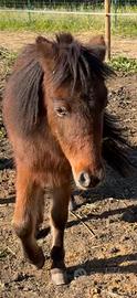 Pony intero, 3 anni, alto circa 80cm. Bravissimo con i bimbi, si fa fare di tutto , abituato a stare anche con cavalle femmine . Bravo in tutto.