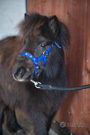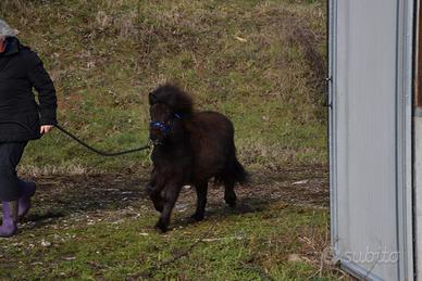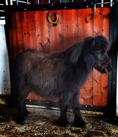 Mini pony morello, carattere equilibrato e dolcissimo, idoneo pet terapy, abituato al contatto umano, altezza 73/74 cm. Disponibilità a visita conoscitiva preventiva e possibilità di trasporto in tutta Italia.
