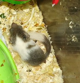 Mangiano frutta verdura mais fresco in pannocchia, qualche chicchino in mezzo alla macedonia di frutta e verdura e ogni tanto qualche insetto vivo da pasto, che vendono online o in alcuni negozi per animali. O Qualche pezzetto di uovo sodo e ogni tanto i semini per pappagalli gli aggiungo , compreso il semino da girasole. Da adulti rimangono poco più piccolo di un criceto russo, quindi necessitano di una gabbia o teca veramente idonea, per evitare fughe.