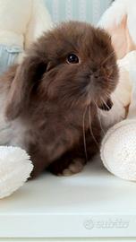 I nostri arietini nani Minilop in purezza sono di razza. I genitori selezionatissimi esemplari dal peso da adulto 1,4 kg restano molto piccoli Inoltre sono addestrati per avere un carattere molto docile molto affettuoso molto gentile e un carattere che va molto bene con le persone si sanno adattare molto bene i ritmi familiari vivono liberi in casa utilizzano perfettamente la lettiera sono molto educati a stare nell'ambiente di domestico Naturalmente il coniglio non deve stare in gabbia perché soffre tantissimo il coniglio starà libero per tutta la casa. Abbiamo dei magnifici esemplari color champagne beige furbo e color marrone e cioccolato hanno un mese e mezzo sono stupendi già abituati a stare con le persone carattere meraviglioso. Scriveteci al numero 349 5891486