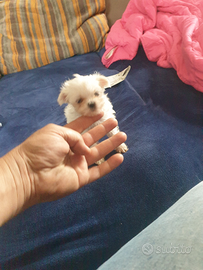 Cucciola di maltese Toy vaccinata vermifugata e con trattamento antiparassitario. Cucciola nata in casa abituata a sporcare sulla traversina da adulta sotto i due chili. Per info 3923522132 Gigi. Con recupero spese posso effettuare consegna in tutta Italia. Prezzo euro 800. Gradito contatto telefonico.