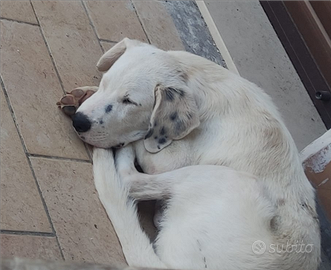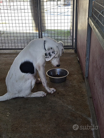 Questo dolcissimo cucciolone ha circa 4 mesi o poco più... È molto affettuoso e dolce!! È una futura taglia media abbondante circa 25/30 kg da adulto... Non sappiamo precisamente chi siano i genitori, lui ricorda molto un Dalmata