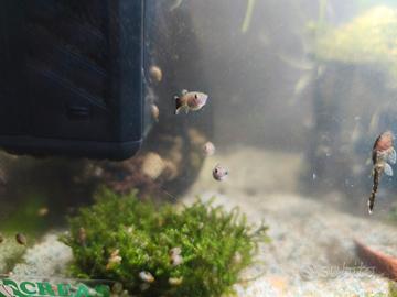 Vendo piccoli di Molly e Guppy,Molly di colore nero,arancione,giallo e nero,bianchi con punti neri,Guppy grigi con coda nera,grigi con coda arancione,grigi con coda gialla