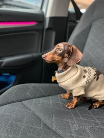 Salve, offro il mio Bassotto Kaninchen Arlecchino per monta o Peso: 3 kg o Età: 2 anni o Salute: Vaccinato, regolarmente controllato dal veterinario o Carattere: Dolce e socievole o Zona: Roma o Note: Cerco femmine di piccola taglia