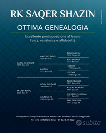 Stallone di grande tipicità, struttura ed eleganza con ottima genealogia, di indole buona.