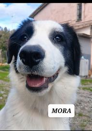 Mora è buona, tranquilla, educata alla vita di gruppo e va d'accordo con tutti: