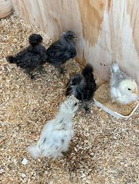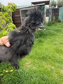 Disponibili pulcinotti e pulcini di gallina Moroseta diverse mutazioni bianco -nero -spalviero-grigio- blu -paint il prezzo varia in base all età disponibile anche qualche riproduttore di 12 mesi esemplari da mostra non da fiera no scambio solo gente interessata x info contattami