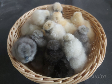 Disponibilità saltuaria di pulcini di razza Moroseta nelle colorazioni crema o blu.