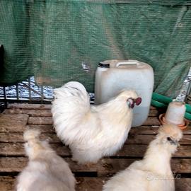 Vendo gallo moroseta adulto, bellissimo piumaggio e un bravo riproduttore. Ad amanti della razza e solo per vita in giardino. Inoltre ho anche un giovane galletto sempre bianco che cedo a 5€