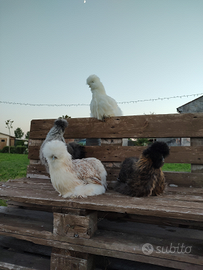 Disponibili varie colorazioni galline e galli moroseta di 7 mesi allevate in purezza e complete di ciclo vaccinale. Molto socievoli e tranquille con altri animali
