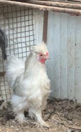-maschio silkie bianco motled(linea americana che dona alla gallina la colorazione della pelle chiara e non nera come le moroseta classiche)