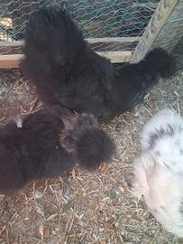 Vendo splendidi galletti moroseta, di età 4 mesi, molto socievole, cresciuti in casa. Si cedono da soli o in coppia con gallina. NON SI VENDONO GALLINE SINGOLE. Ci troviamo in provincia di Ravenna Prezzo galletti 20€ Prezzo coppia 50€