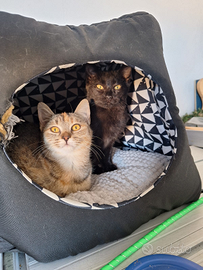 Mulan (nera) e Merida (grigia) hanno 4 mesi, sono vaccinate e a breve saranno microchippate e testate fiv e felv. Le piccole sono sopravvissute grazie alle cure intensive ricevute e alla loro voglia di vivere. Quando sono state trovate dai volontari, infatti, il loro stato di salute era seriamente compromesso a causa della presenza di parassiti intestinali che avevano causato anemia e deperimento.