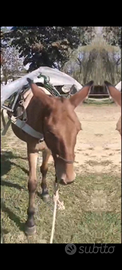 Mulo 4 anni inizio doma a basto. Ottima linea di sangue sia da lavoro che da sella. H 153 circa. Bravissimo!! Ottima indole e buona gestione da terra. Sano. Qualsiasi prova. possibilità di trasporto in regola