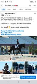 Vendesi stallone già approvato alle monte dai selezionatori della razza murgese, arrivato terzo nella categoria cavalli giovani Doma classica (nel 2025 ai campionati italiani di monta da lavoro wei wawe con una ragazza di 14 anni).
