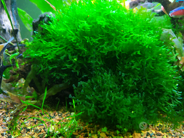 Muschio bellissimo e resistente. Si presta ad un uso molto flessibile: legato su tronchi o rocce oppure lasciato semplicemente su fondo cresce stratificandosi come un cespuglio acquatico. Molto versatile e bello. 5 euro a porzione