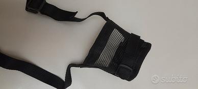 Museruola per cani di media- grossa taglia regolabile con velcro e cinturino di bloccaggio, mai usata con confezione originale.