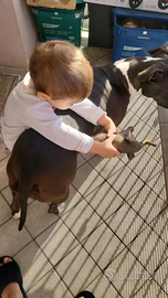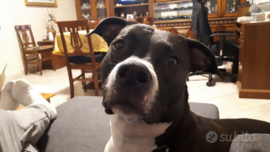 Cedo con tutto il cuore in mano, femmina di amstaff 4 anni, dolcissima e bravissima, molto socievole con le persone e con cani se quest'ultimi propensi a giocare. Affettuosa con i bambini e molto legata alla persona che se ne prende cura. Per motivi di poco spazio e problemi di mantenimento sono costretta a cederla, solo a persone appassionate e che si prendano cura di lei.
