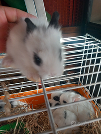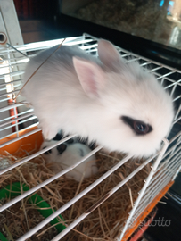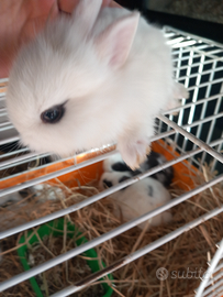 Salve coniglietti nani testa di leone abituati al contatto umano possibilità di maschi o femmine e possibilità di acquistare gabbia tutta accessoriata