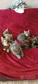 Cuccioli Maine Coon sono nati l' 8 febbraio raggiungeranno le loro famiglie dopo l' 8 maggio. Verranno ceduti con pedigree AfEf , vaccini, sverminazione , microchip e certificato di buona salute dopo visita veterinaria. Genitori visibili testati ed esenti da malattie genetiche, FILV E FELV negativi ,ecocardio perfetto Ci troviamo in Puglia per info contattatemi su WhatsApp 3342403471 Il prezzo di 800€ varia in base al contratto