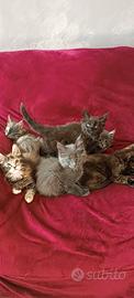 Cuccioli Maine Coon sono nati l' 8 febbraio raggiungeranno le loro famiglie dopo l' 8 maggio. Verranno ceduti con pedigree AfEf , vaccini, sverminazione , microchip e certificato di buona salute dopo visita veterinaria. Genitori visibili testati ed esenti da malattie genetiche, FILV E FELV negativi Ci troviamo in Puglia per info contattatemi su WhatsApp 3342403471 Il prezzo di 800€ varia in base al contratto