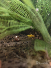 Evita di mescolare diverse colorazioni di Neocaridina davidi (es. rosse o blu) se desideri mantenere il colore giallo puro; gli incroci tendono a regredire verso la colorazione selvatica brunastra.