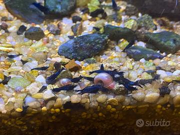 Vendo splendidi esemplari di Neocaridina davidi Blue, allevati in acquario domestico, sani e molto attivi. Colore intenso e uniforme, ideali per acquari di comunità pacifici o per progetti di riproduzione.