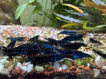 Gamberetti Caridina blu allevati e selezionati da me, di colorazione blu intenso.