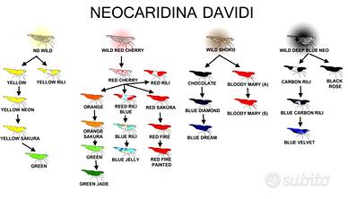 Neocaridine davidi selezione Red Fire e Red Sakura, come da schema in foto. 2.50? ad esemplare Gamberetti acquario