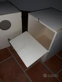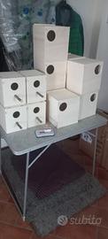Nidi per bengalini e passeri del Giappone euro 6, misure 14x12,5x12,5 con frontalino rimovibile Bengalini euro 6,5 13x14 slt 15 spess 8 Cocorite euro 7,5 15x16 alt 18.5 spess. 8 Inseparabili euro 9.5, 25x17 alt 18.5 spess. 8 Calopsite euro 18, 25x25 alt 30 spess. 10 Kakarichi euro 20 25x25 alt 30 con apertura sul tetto e su un lato, e striscia di rete per arrampicarsi spess. 10. A richiesta con nicchia sul fondo, tutti apribili, possibilità di avere ad apertura scorrevole, con maggiorazione sul prezzo di euro 0.50 zona cittadella posso spedire. cell.3393972846. Per soddisfare al meglio le esigenze del cliente i nidi vengono costituiti al momento della richiesta.
