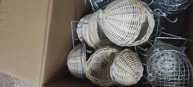 Cedo nidi completi per canarini e cardinalini. Cestello in acciaio, nidi in vimini e cestelli in tnt bianco. La metà nuovi e parte usati, saranno un centinaio circa