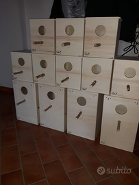 Nidi vari , Bengalini euro 6,5 12x13 alt 15 spess. 8 Cocorite euro 7,5 15x16 alt 18.5 spess. 8 Inseparabili euro 9.5, 25x17 alt 18.5 spess. 8 Calopsite euro 18, 25x25 alt 30 spess. 10 Kakarichi euro 20 25x25 alt 30 con apertura sul tetto e su un lato, e striscia di rete per arrampicarsi spess. 10. A richiesta con nicchia sul fondo, tutti apribili, possibilità di avere ad apertura scorrevole, con maggiorazione sul prezzo di euro 0.50 zona cittadella posso spedire. cell.3393972846. Per soddisfare al meglio le esigenze del cliente i nidi vengono costituiti al momento della richiesta.