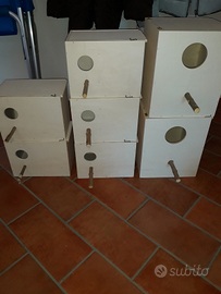 A richiesta con nicchia sul fondo, tutti apribili, possibilità di avere ad apertura scorrevole, con maggiorazione sul prezzo di euro 0.50 zona cittadella posso spedire. cell.3393972846. Per soddisfare al meglio le esigenze del cliente i nidi vengono costituiti al momento della richiesta.