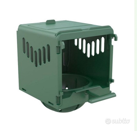 Nido esterno per cardinalini e piccoli fringillidi, realizzato interamente in plastica con la ciotola nido estraibile per facilitare le operazioni di pulizia e controllo della nidiata.