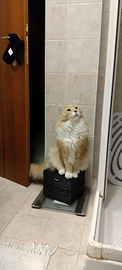 Con il micio due tiragraffi grandi, due lettere chiuse con tappetini e palette , giochi, spazzole, ciotole