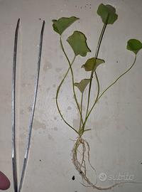 Vendo piante di Nymphoides hydrophylla, comunemente conosciuta come 'Taiwan Lily/flipper'. Caratteristiche: Presenta foglie verde brillante di forma cuoriforme o tondeggiante con bordi leggermente ondulati. È una pianta a crescita rapida, adatta alla parte centrale o posteriore dell'acquario e Produce fusti sottili che raggiungono la superficie, sorreggendo le foglie che spesso galleggiano. Buona per caridine e avannotti alcune volte useranno le foglie come riparo. Pianta piccola (fusti bassi) 3,50€ Pianta medie/grande (alti come nelle foto) 5€ Oppure 2 piccole 7€ più in regalo un piccolo marimo Disponibilità di altre piante: Anubias barteri var. nana. ; Marimo; Limphopia sessiflora; Elodea canadensis (ultime steli); Limnobium laevigatum; Cryptocoryne spiralis var."Red"; Zona ponte lungo .