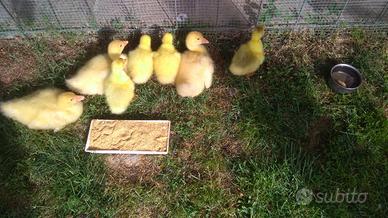 In vendita alcune giovani oche del Danubio vivono libere nel prato del giardino di casa. Foto di miei esemplari adulti.