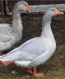 Disponibilità di coppie di oche Franconia. Colorazione blu. Le femmine di questa razza sono grandi covatrici e ottime madri nell' allevare la prole.